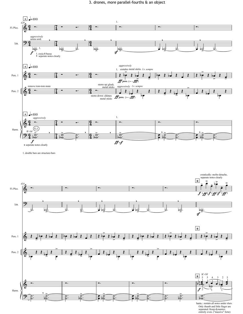 For Harmonium, piccolo, trombone & 2 percussion