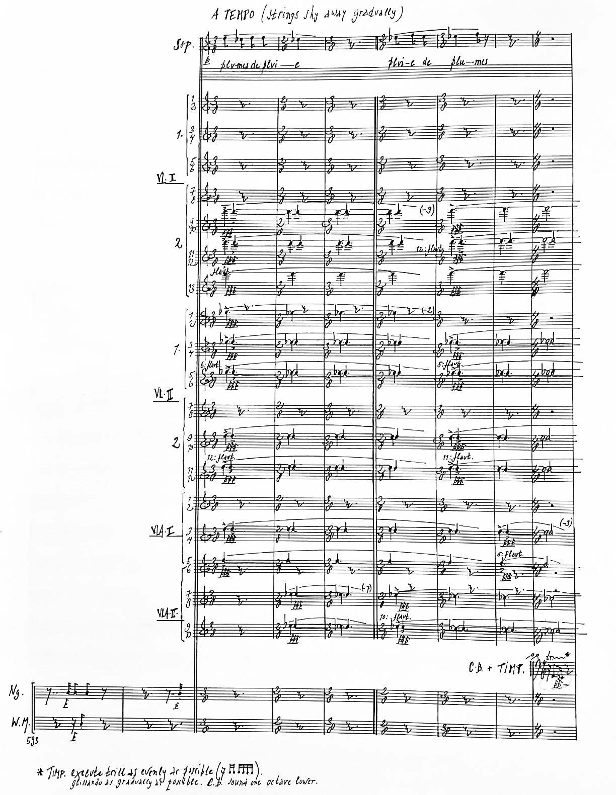 When the music seems to have reached a point of no return, it suddenly flourishes however and the singer embarks on an exalted ode to the birds. As the string orchestra disappears one by one, her appeal is gradually taken over by a percussion ‘machine’, consisting of artificial bird sounds and other noise makers – thereby returning the music once again to its ‘natural’ state of chaos.
