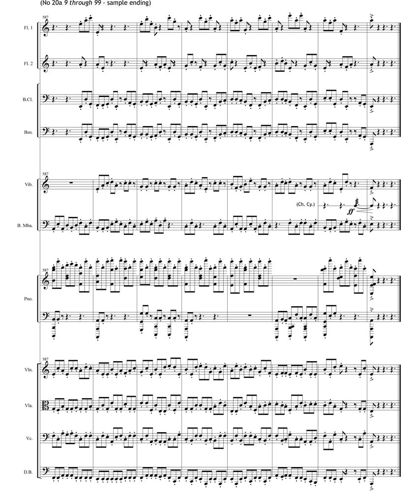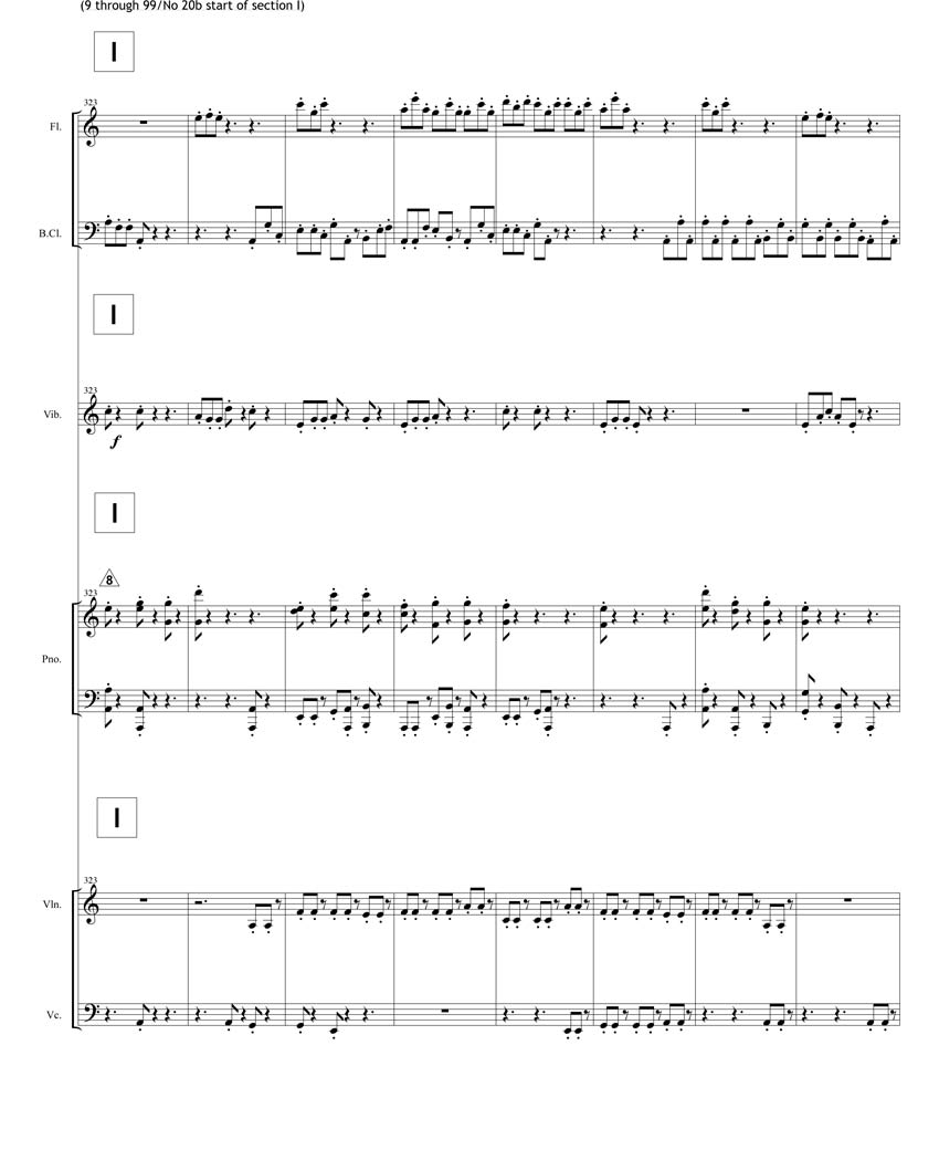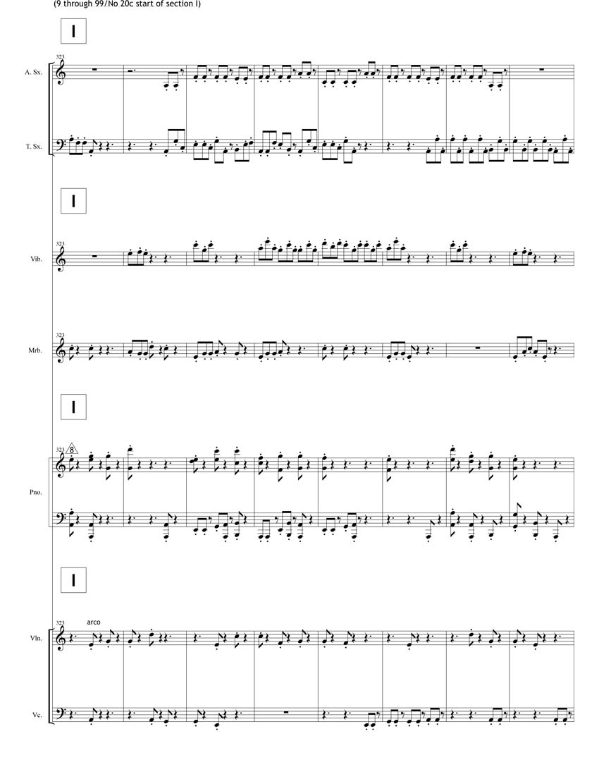 20c: alto sax, tenor sax, violin, cello, marimba, vibraphone, Chinese Cymbal & piano