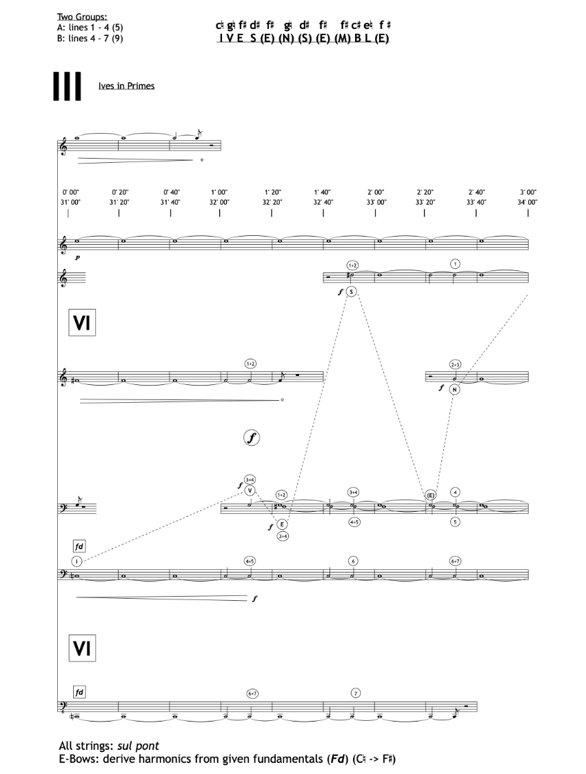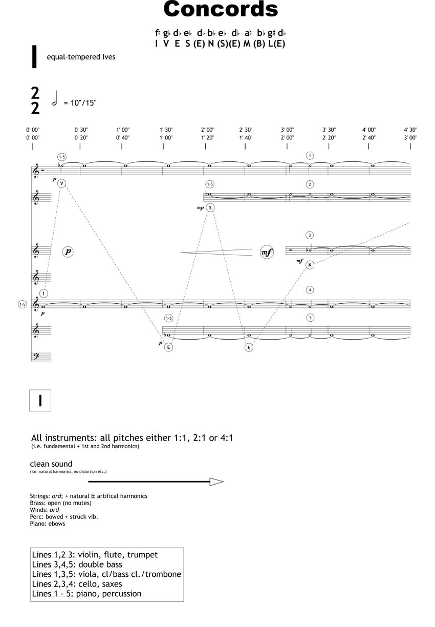 Concords I - III - as a plural homage to all these definitions - is derived entirely from the available letters supplied by the name 'Ives Ensemble'.