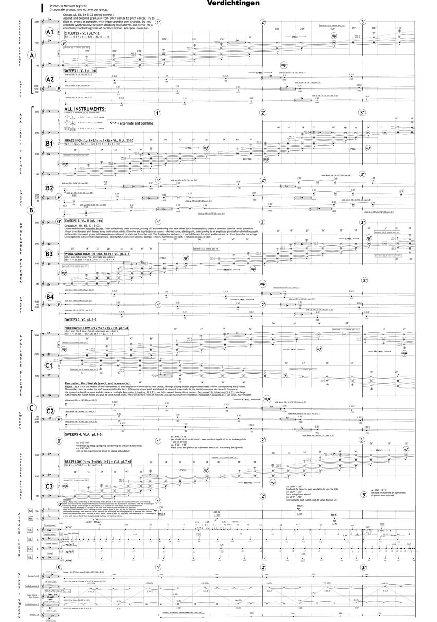 As in much of my work, the music investigates specific relationships between ‘microtonal reflection’, time and perceived velocity. An important part in Verdichtingen is reserved for the percussion, which translates specific microtonal relationships to tempo.