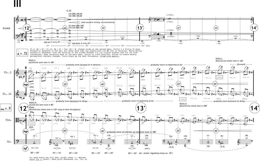 In this way, the frequently veiled harmonies of the string quartet work as a kind of smokescreen, obscuring the source (the sinewaves) and its reflection (the string quartet).