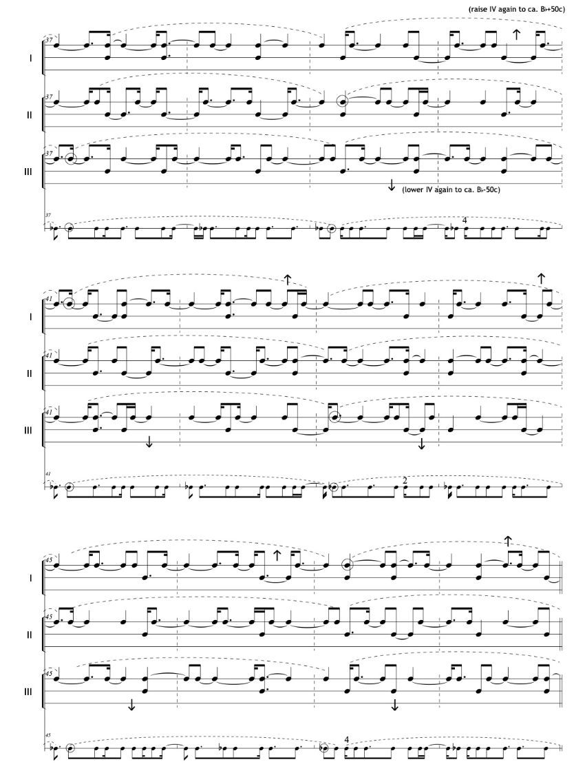 In 2018 I had the good fortune of attending the International Gugak Workshop for traditional Korean instruments in Seoul. For the final presentation concert the group of composers were invited to write short pieces for setups of their liking. Having developed a fascination for one of the most curious and primal of zither instruments, the Geomungo (an instrument I spent painful days trying to master during the workshop), I decided to experiment a little with three of them, using some of the ideas I was working on at the time with the unison restrung guitar (as employed first in Environments). The piece is scored for the lowest three strings of the instruments (characteristically all in Bb), with each of the instruments alternately striking their strings along a perpetually evolving rhythm. In two processes of gradual detuning the two outer instruments then lower and raise their 4th strings by about 50 cents while gradually introducing the 5th and finally the (magnificent) 6th string into the ongoing rhythm.